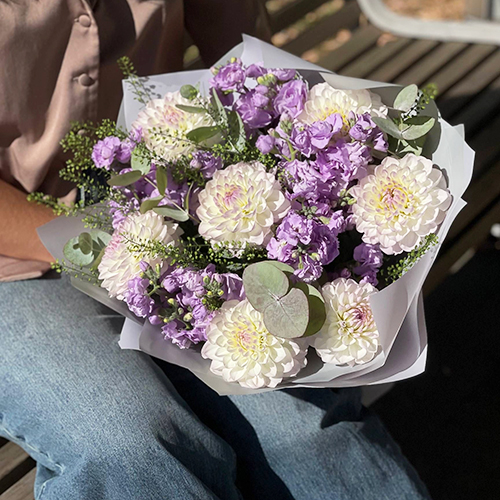 Букет "Совершенство" из георгин и ароматных маттиол