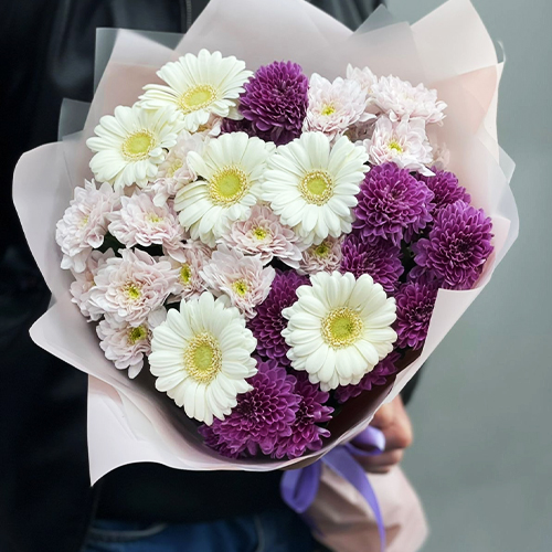 Букет "Сюрприз" из хризантем и гербер