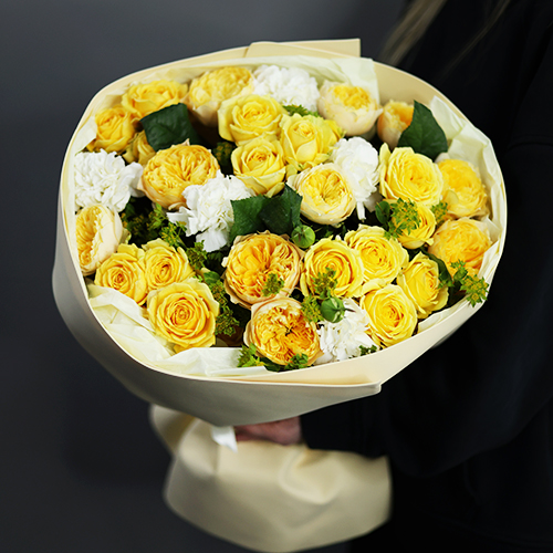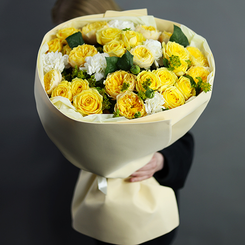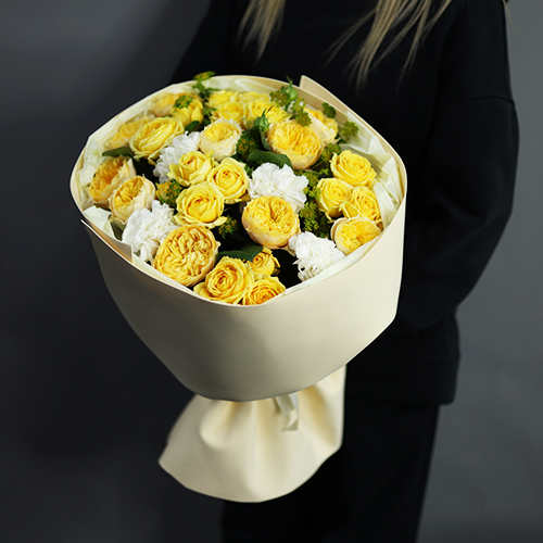 Стильный букет "Кредо" из пионовидных роз и диантусов