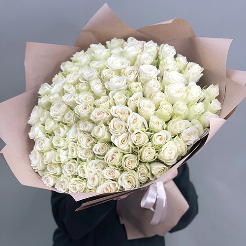 Букет 101 белая роза кения (50 см)