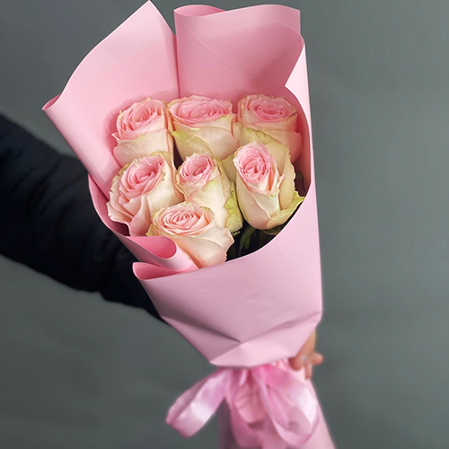 Букет 7 Кенийских розовых роз (40 см)