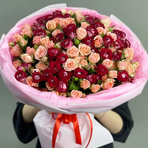 Букет "Рубиновый гранит" из 35 кустовых роз микс (50 см)