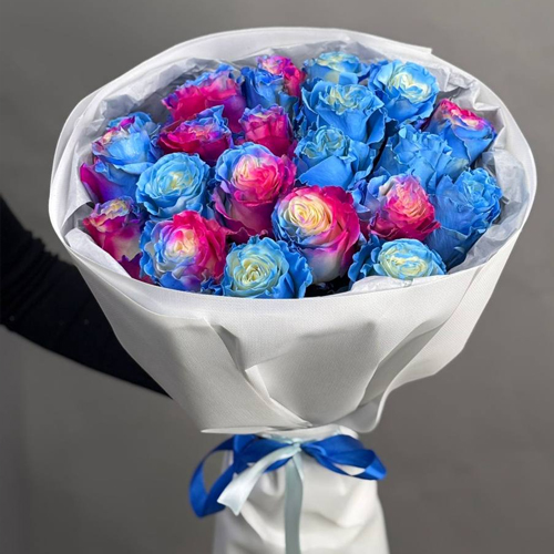 Монобукет из 21 розы Эквадор Радуга (70 см)